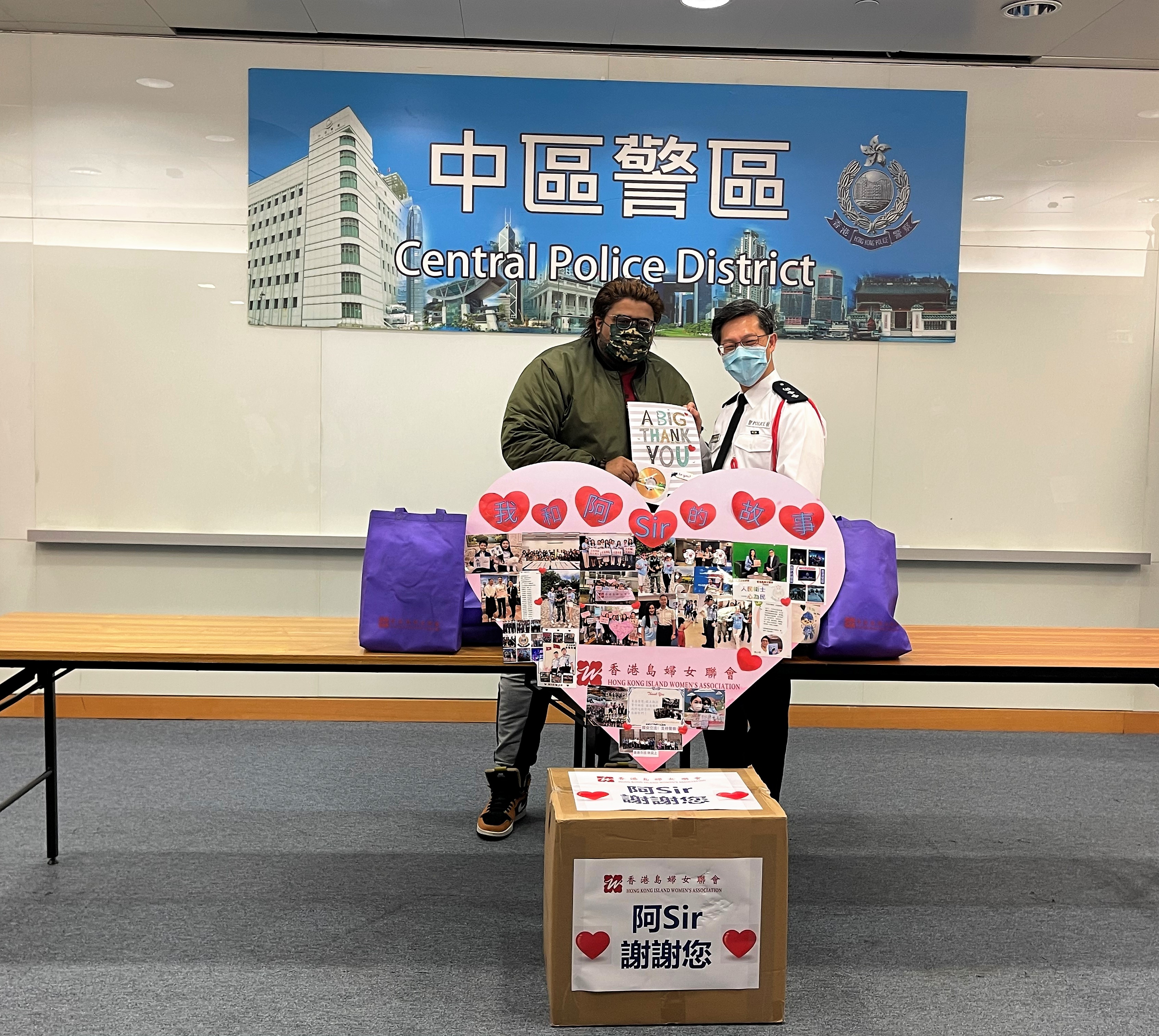 【今日时报讯】时值岁末,香港岛妇女联会以「我和阿Sir的故事」为题收集会员及义工朋友对警队表达感谢与祝福之信息,并汇集成照片横幅、祝福贺卡、视频DVD、爱心照片墙等各种作品,在2月1日开展慰问三区警署活动(中区、西区、山顶警署),向香港警察传递会员的祝福与感激。香港岛妇女联会副主席赵华娟、程莉元、陈巧莉、刘江红、邱婕儿、杨张新悦及其先生山顶区区议员杨哲安,秘书长胡玉贞,名誉会长牟彤、孟韦芯,南亚裔的义工李浩诚及朋友,执委们的家人子女纷纷出席是次三区警署慰问活动。